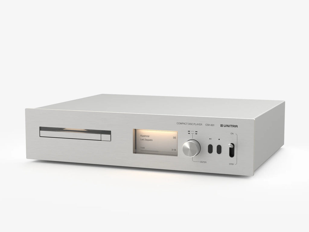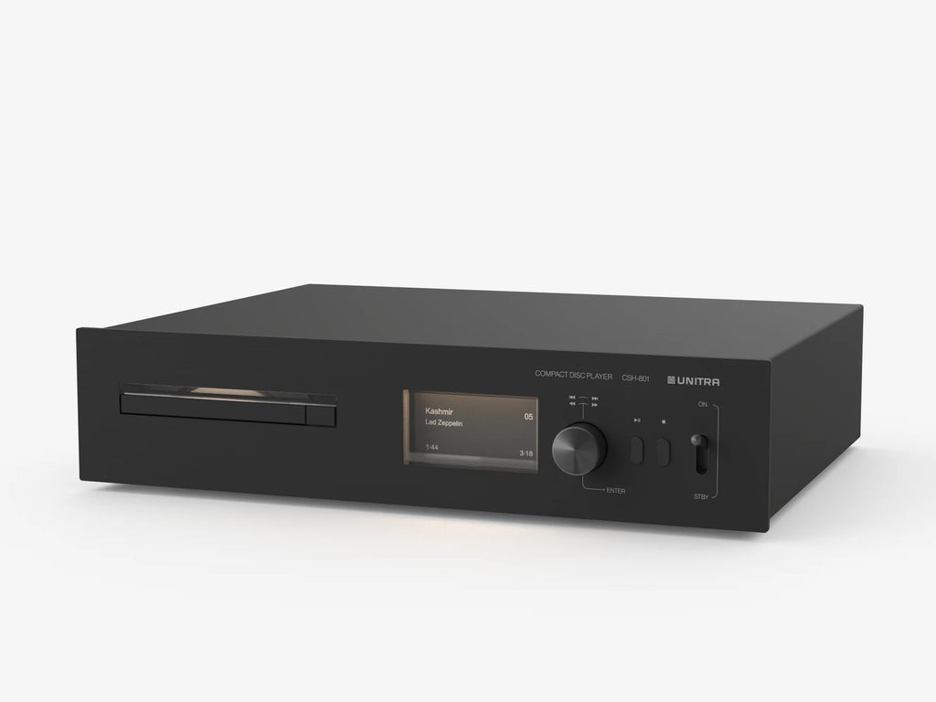 This CD player combines DAC and transport functionality within a design that seamlessly matches Unitra’s latest lineup of components. A distinctive interface built around a backlit E Ink display presents information with a natural, paper-like appearance that is easy on the eyes. The visual identity is further refined by an aluminum front panel and a dedicated CD viewfinder that highlights the disc mechanism. An integrated DAC enables direct connection to an analog amplifier, while digital outputs provide flexibility for use with an external digital converter.